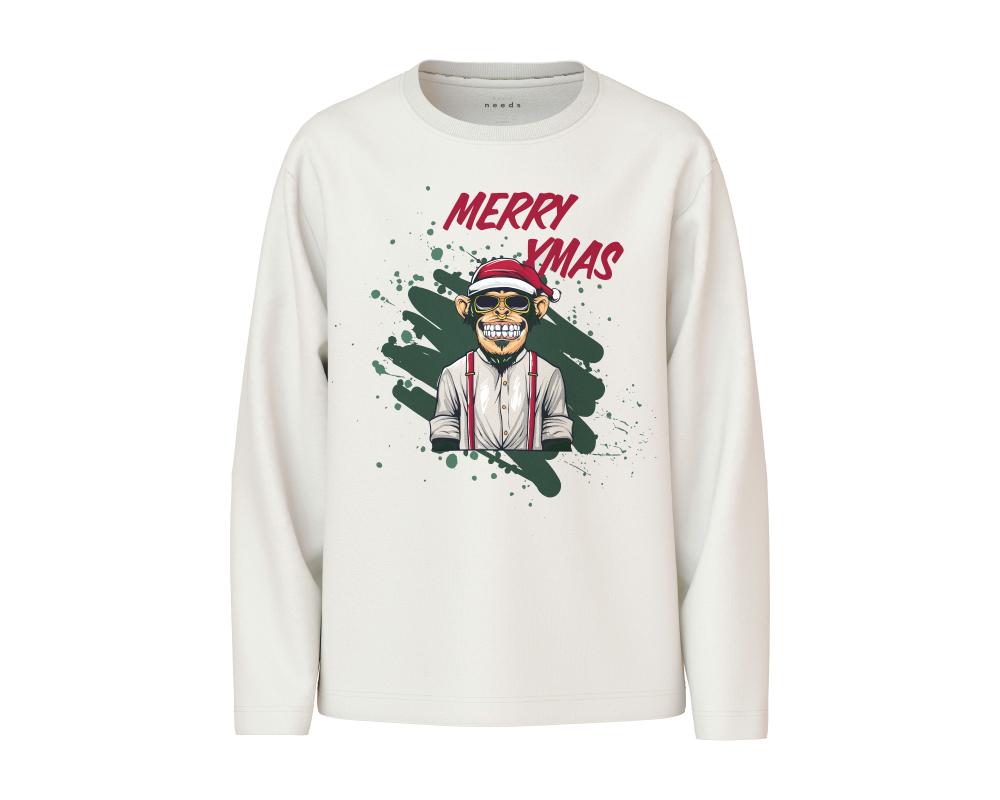 name it Kinder Langarm Shirt nkmVOSMAS Merry XMAS in wollweiß
