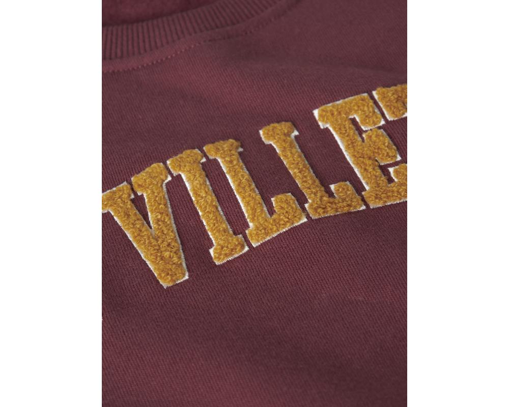 Dieses lässige Jungen-Sweatshirt von Name it ist der perfekte Begleiter für aktive Kinder. Das dunkelrote Oberteil besticht durch seine hochwertige Verarbeitung und den angenehmen Tragekomfort. Der besondere Blickfang ist die aufwendige SOCIÉTÉ-Stickerei auf der Vorderseite, die dem Sweatshirt einen sportlich-modernen Look verleiht. Die Stickerei in Braun- und Weißtönen hebt sich kontrastreich vom grauen Untergrund ab und sorgt für einen coolen Vintage-Effekt. Mit seinem klassischen Rundhalsausschnitt und den gerippten Bündchen an Ärmeln und Saum bietet das Sweatshirt eine bequeme Passform. Die langen Ärmel machen es ideal für kühlere Tage und Übergangszeiten. Das weiche Material garantiert höchsten Tragekomfort beim Spielen, in der Schule oder in der Freizeit. Dieses vielseitige Sweatshirt lässt sich mühelos mit Jeans, Jogginghosen oder Shorts kombinieren und ist somit ein echtes Must-have für die Kindergarderobe.Langärmeliges Sweatshirt